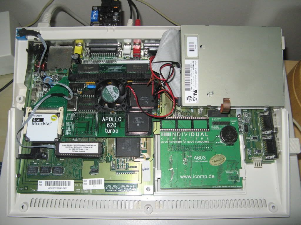 Inside A600, Apollo 620 + A603 + 4gb Microdrive on Mika's Custom CF-IDE. 1.3 / 3.1 on Rom Switch.