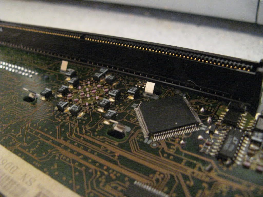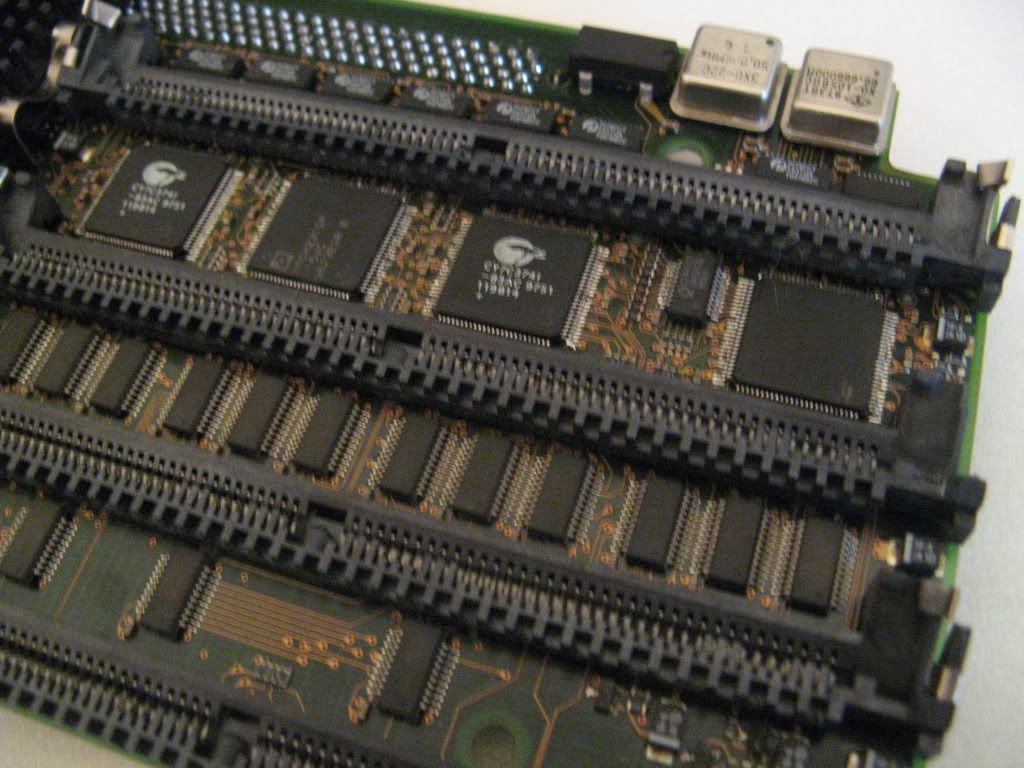 CPU Connector cleaned and resoldered. Two simm sockets have been removed and resoldered (for access to solder new CPLD)