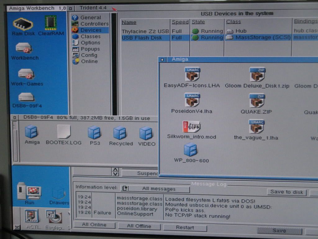 Also - I installed the poseidon USB stack and disabled the one included with the card. I'm not 100% familiar with poseidon and how the Amiga handles file systems. I do have a thumbstick that I was hoping to use to transfer files back and forth with my linux pc. However, when I plug the thumbstick in, it looks like trident can 'see' it, but I don't know how to actually mount and use the filesystem...anyone? :)