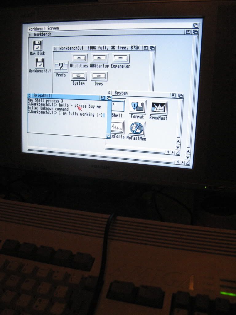 There is some corrosion to the top of the Flooppy Drive and RF unit, but everything is fully functional, sound is crisp and clean as are all the Video outputs. Roms are version 3.0, there is a HDD Cradle installed.
