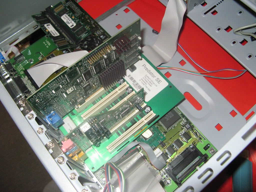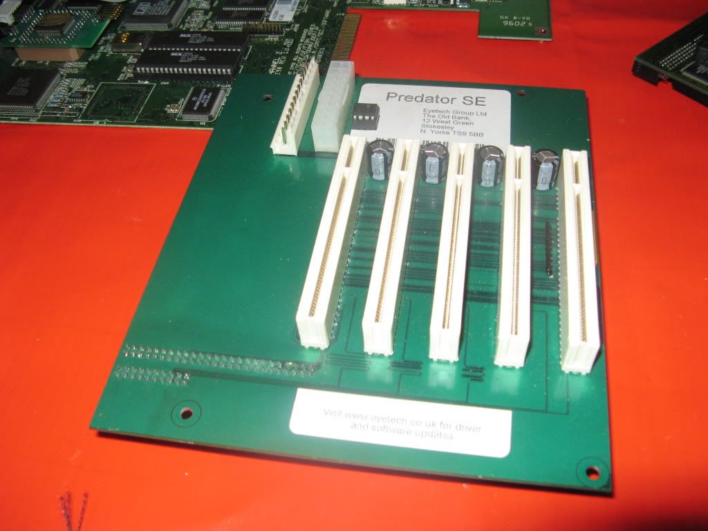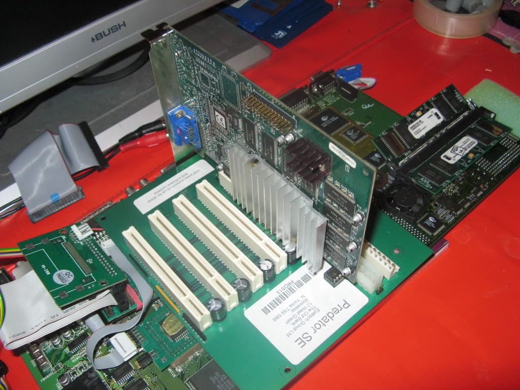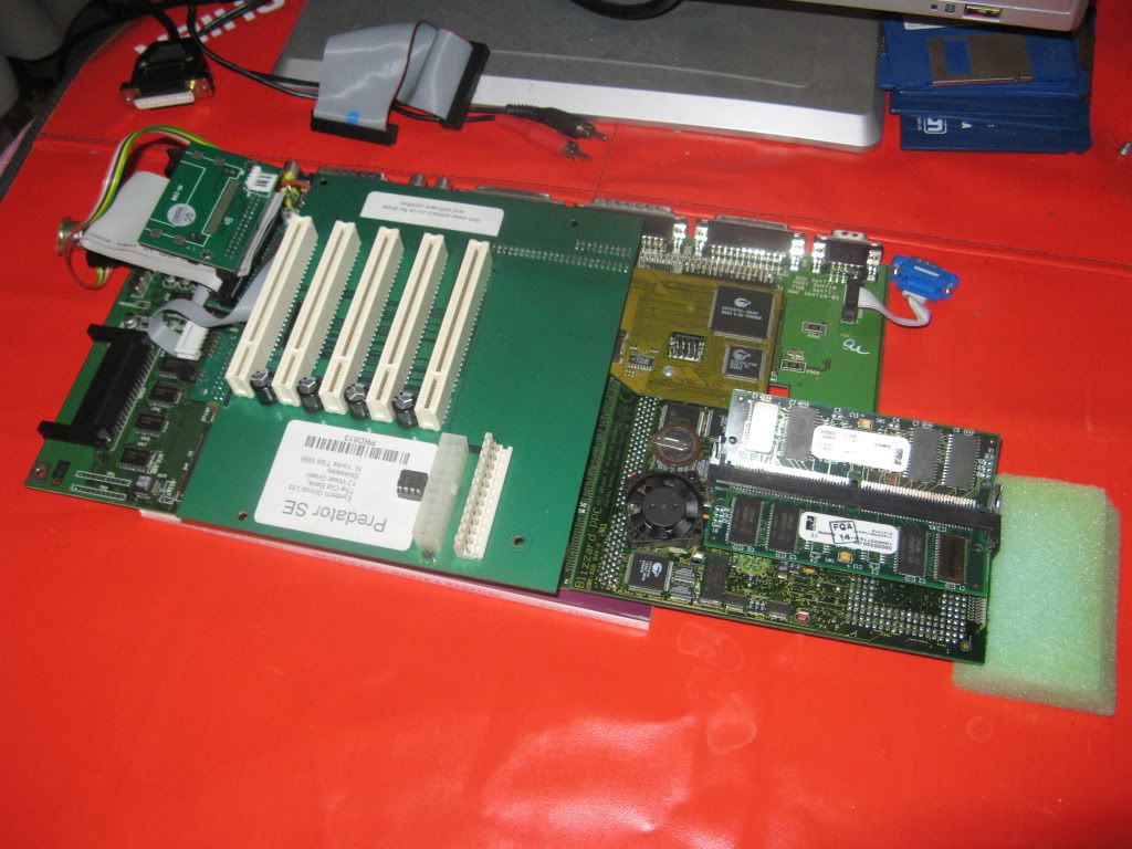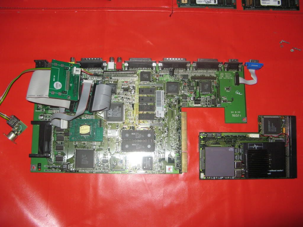 As usual I'm working outside the case on my Anti-Static mat hooked up to a TV by RGB Scart and VGA with a PeeCee Keyboard running of Elbox PCKey1200, here's a shot with the Busboard in place:
