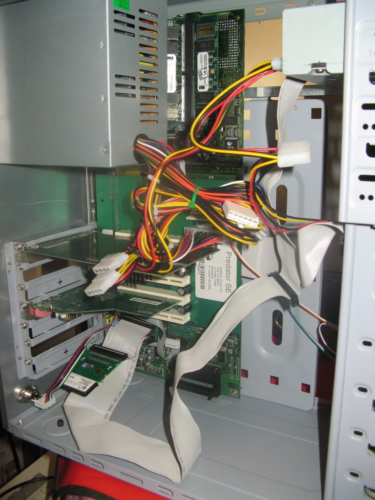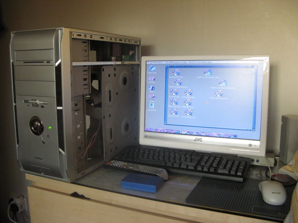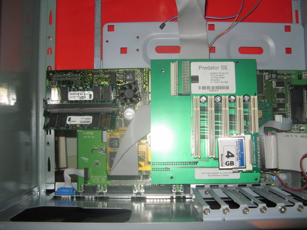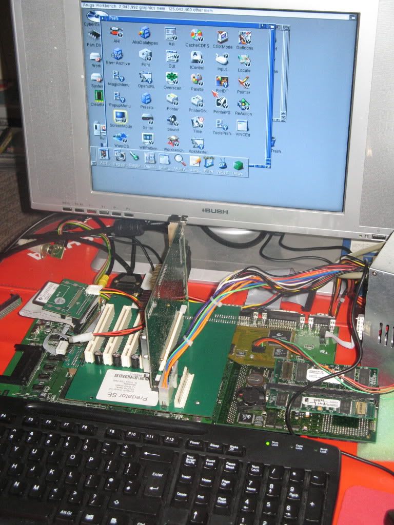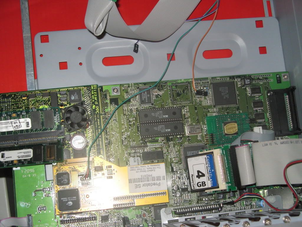 As usual I'm working outside the case on my Anti-Static mat hooked up to a TV by RGB Scart and VGA with a PeeCee Keyboard running of Elbox PCKey1200, here's a shot with the Busboard in place: