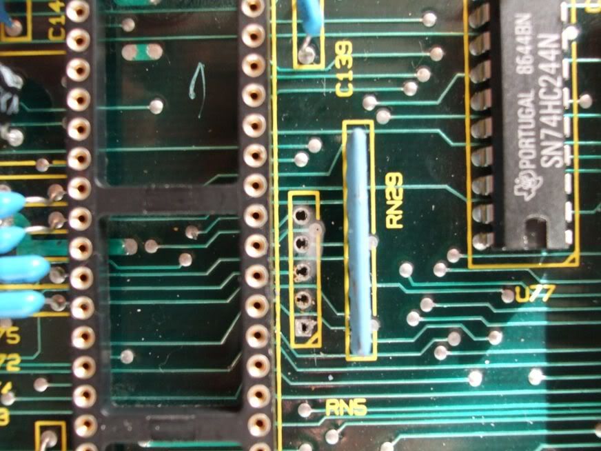 Mine had a green and yellow too because of the damaged CPU & agnus sockets .