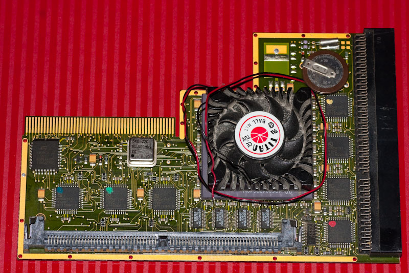 My card has a small heat sink and CPU fan attached to the 040, I was powering the CPU fan via the floppy connector so there's no plug for the CPU fan (check the photos to see what I mean).