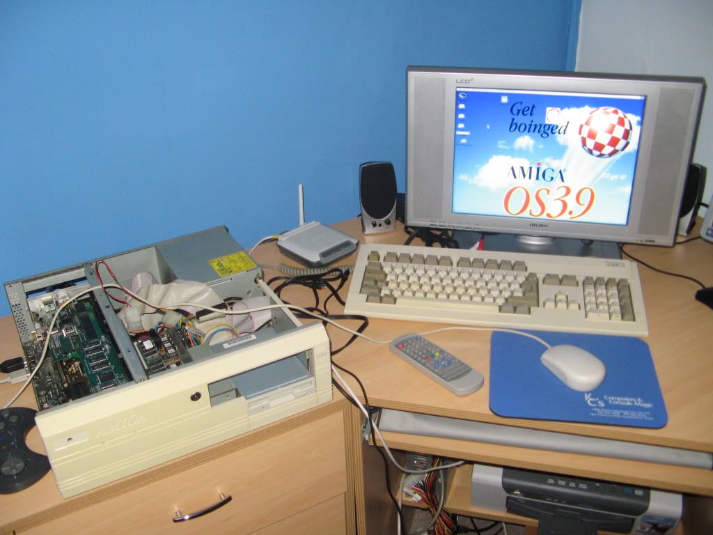 The A4000 Mothertboard was refurbished by JJB, so should be good as new. It also has CSMkI (040 @40mhz) 64mb Ram, ZorRam 128mb, CyberVision 64/3D, DKB Scan/Flicker Magic(seems to be dead) and an X-Surf :cool: