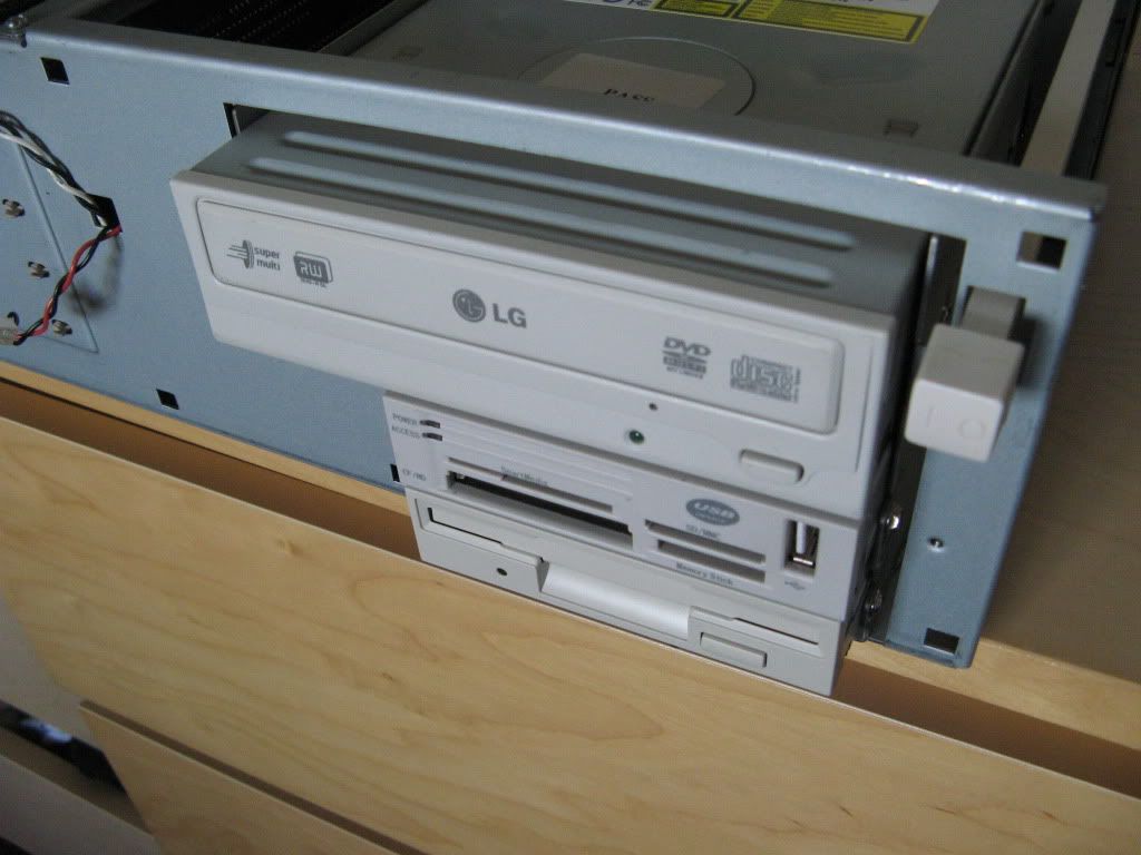 I also decided to switch the CDROM for a shorter DVD drive and also replaced the tall HD Floppy with a new FDD and USB Reader, plus custom adapters via USB2 Hub going into the Deneb.