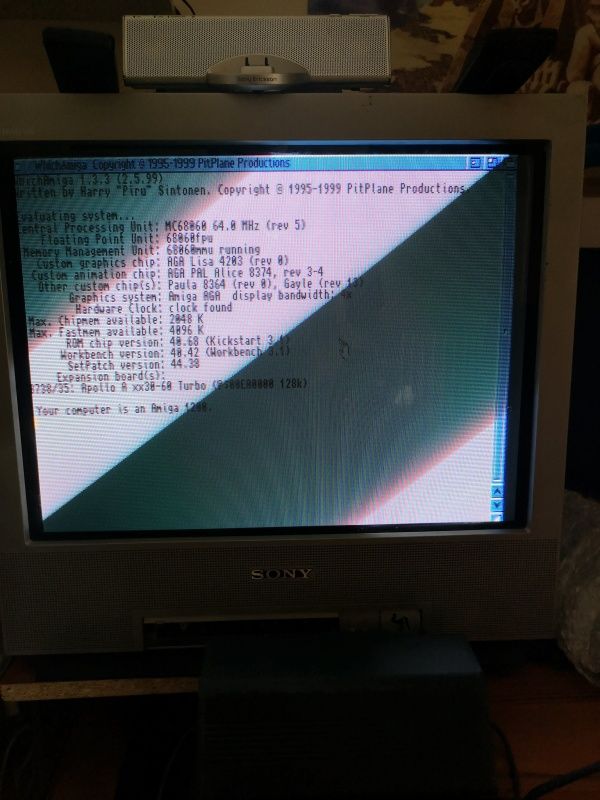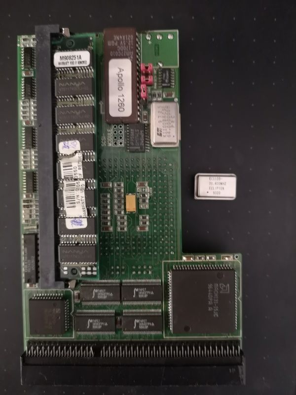 So, here's an A1200 Magic Pack boxed with an Apollo 1260 accelerator (68060@64Mhz) and 32mb of RAM. Card has been tested with 80MHz and active cooling and worked completely reliably. Sadly, I no longer have an 80Mhz crystal as I've sold my oscillators collection, but I will include a 70Mhz one that I've found and it's working. Whether that frequency needs active cooling or not, I cannot tell. The A1200 is fitted with the original 2.5'' HDD and contains only a very basic 3.1 installation from the original workbench disks which are included with everything else you see in the photos (metal joystick, rgb to scart, all original disks of Magic Pack). The accelerator will be shipped NOT installed (you'll have to install the required 060 libraries yourself) and in a separate package inside the A1200 box (not fitted in the trapdoor slot).