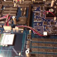 After that I turned off the computer and put the S5 jumper back to enable the Boot ROM. The 68030 processor was replaced with the turbocard. Also the 50MHz oscillator was removed from the motherboard, as the turbocard is now handling the CPU clock signal.