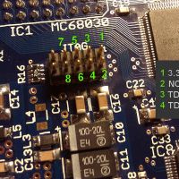 Here is the JTAG pinout and the JTAG programmer connected to the turbocard.