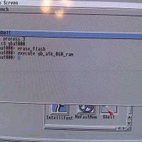 The programming is done using the onboard 68030 processor of the motherboard. First I removed the S5 jumper from the motherboard so the Boot ROM could be programmed. Then I started the computer and erased the Boot ROM with erase_flash command and programmed a new boot code with execute gb_a1k_060_ram.
