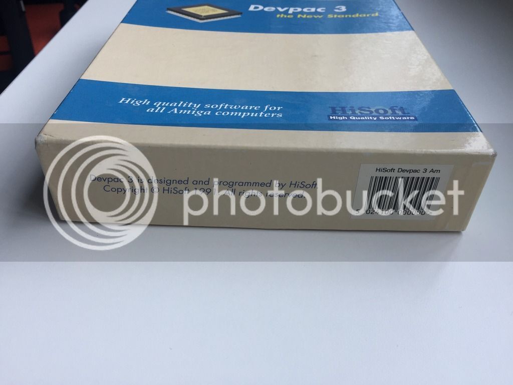 Selling my copy of Hisoft Devpac 3. It's in very good condition. The manual is perfect and all other literature has been well cared for. The only things to point out is the box has slight bowing on top where it looks like something heavy may have been resting on it (see photos) and the 68000 reference guide rear cover is slightly damaged.