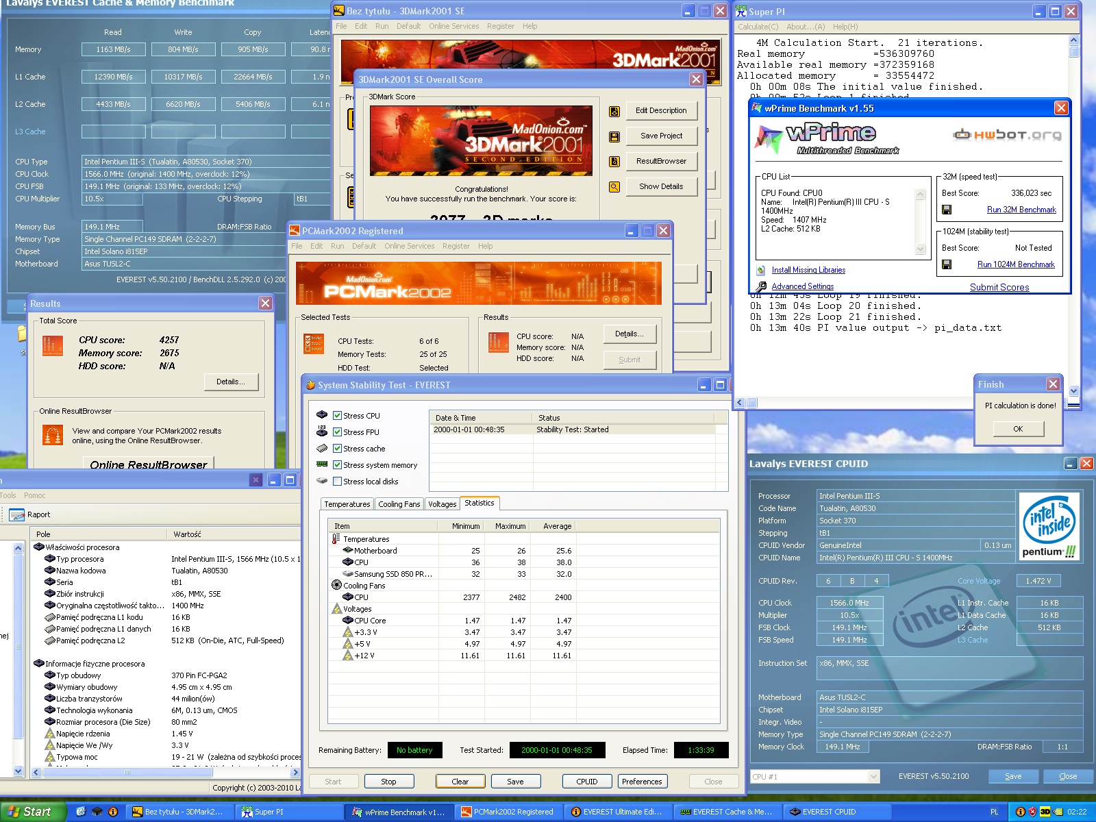 - 1704 MHz @ 1,65v(set in BIOS) - 44 Celsius max. temp. under full load