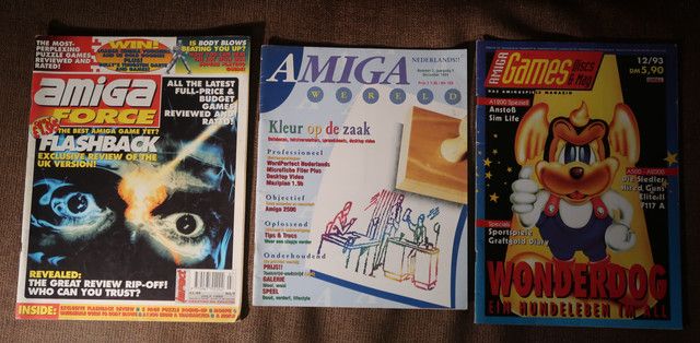- 3x Amiga magazines (Amiga Games 12/93, Amiga Force July 1993, Amiga Wereld Nr 2 Jaargang 1 December 1989)